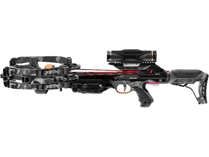 Introducing the Barnett Hyper Raptor BCX Crossbow, an advanced hunting crossbow seamlessly integrating cutting-edge tech for exceptional performance. As the newest member of the Barnett lineup, it launches 20" HyperFlite arrows at an impressive 425 fps*, delivering 152fp of kinetic energy for effective penetration. Weighing only 6.9 lbs. and measuring 7.25 in. axle-to-axle when cocked, the BCX features a nimble design for diverse hunting scenarios. With a custom step-through riser, advanced limbs, Infinity cams, TriggerTech trigger, and Soft-Lok Bristle Retainer System, the Hyper Raptor BCX ensures precise accuracy. Pivoting limb pockets boost durability, and the innovative Halo System guarantees balanced string travel for superior accuracy. Elevate your hunting experience with the Barnett Hyper Raptor BCX.