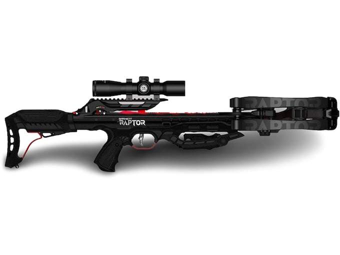 The All New Barnett Hyper Raptor Crossbow Package blends Barnett's industry-leading technologies to create nature's perfect hunting machine. As the newest member of Barnett's HyperFliteTM family, the Hyper Raptor provides unparalleled lethal performance. With these advancements, the Raptor sends small diameter 20" HyperFlite™ arrows downrange at a blistering 425 fps. and delivers 152 ft. lbs. of kinetic energy for maximum bone-crushing penetration.