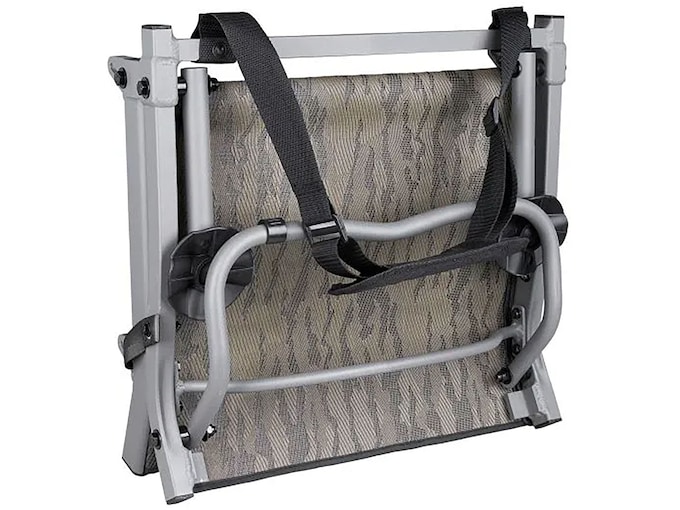 The angle of the chair's backrest can be adjusted, providing personalized comfort and support. For those moments when you need to get even lower to the ground, the rear legs can fold up, offering an adaptable hunting position. The extra wide pivoting feet enhance stability on soft ground or uneven terrain, ensuring you remain steady and secure no matter where you set up.