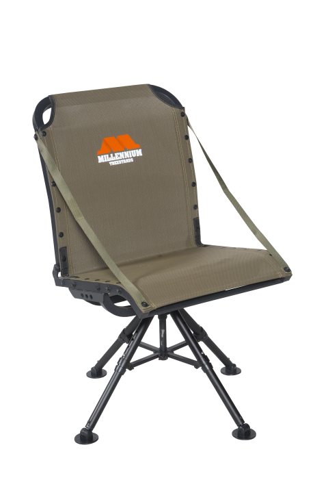 The G400 and G450 Blind Chairs provide the ultimate seating solution for hunters who demand comfort, stability, and convenience in their hunting blinds. Featuring Millennium’s patented ComfortMAX contoured tight-sling seat, both models offer a comfortable seating experience for long hours in the field. Built with durable powder-coated aluminum, these lightweight yet sturdy chairs can handle up to 400 lbs. and come with adjustable legs to ensure stability on uneven terrain. The seat swivels 360° for full-range visibility, and with a 3.5-inch height adjustment, you can tailor the chair to your ideal position.