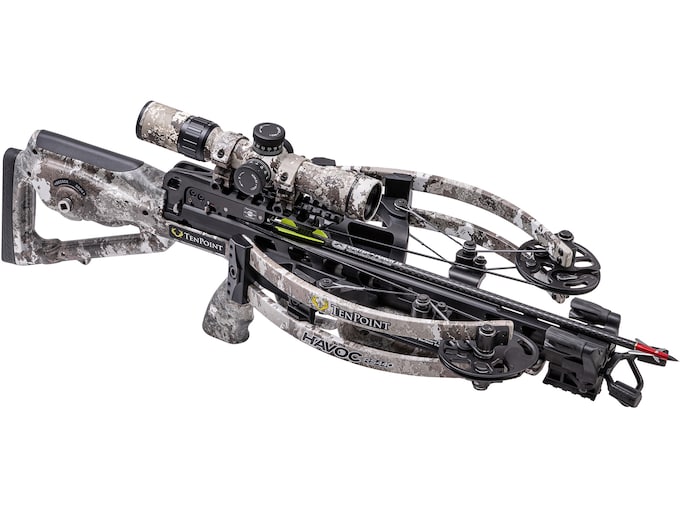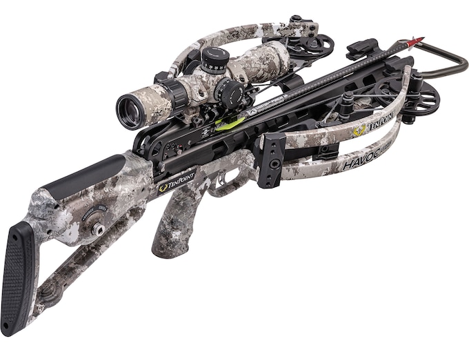 Factory new closeout model exclusive to MidwayUSA. The TenPoint Havoc RS440 with ACUslide EVO-X Crossbow Package is the fastest compact crossbow. Ever. Its micro-trac barrel reduces string to rail contact by an incredible 50%. This helps improve accuracy and provides string life in excess of 1000 shots. The S1 trigger has a 2 stage, zero creep design that features a roller sear system that sets a new standard in high performance crossbow accuracy. The EVO-X Marksman Elite Scope has a variable speed design up to 500 FPS and maximizes accuracy out to 100 yards. It also features external micro-adjustable target turrets for easy adjustments to account for windage and elevation. The ACUslide cocking and de-cocking system provides silent cocking and safe de-cocking. The adjustable butt plate provides 1-inch length-of-pull adjustment.